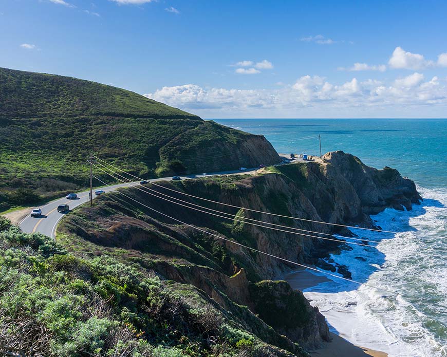 Taking Highway 1 north at the junction with CA-35, I drove toward Pacifica. It’s a transition from woodland to ocean, like changing keys in a symphony. The road clung to the cliffs, the left side dropping steeply into frothy surf below. The wind here could knock your cap off, but it carried stories—of sailors, seals, storms.